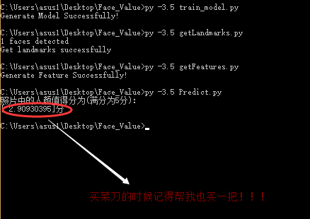 对结果不满意或者因为结果分数过低而想不开者,请自行联系xxxPh.D.。也就是此颜值预测算法的提出者!!!本人只是部分复现了他的算法!!!