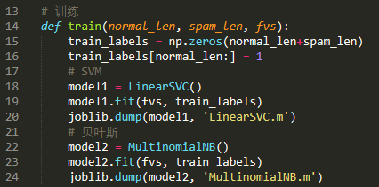 我们使用scikit-learn机器学习库来训练分类器,模型选择朴素贝叶斯分类器和SVM(支持向量机):
