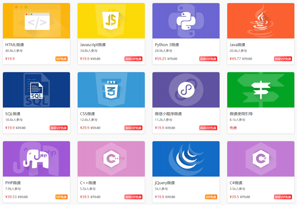 编程微课是目前最受w3cschool小伙伴欢迎的课程。