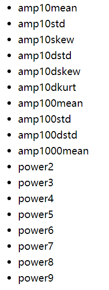 ① 歌曲波形的统计矩,包括均值、标准差、偏态和峰态,同时,我们通过平滑窗(递增平滑,长度分别为1,10,100,1000)来获取这些特征在不同时间尺度上的表现;