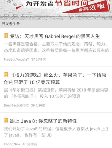 另外,他们对于开发者头条也非常关注。因为互联网每天都有新事物出现,需要跟上时代的步伐。例如w3cschool app阅读代码和开发者头条。