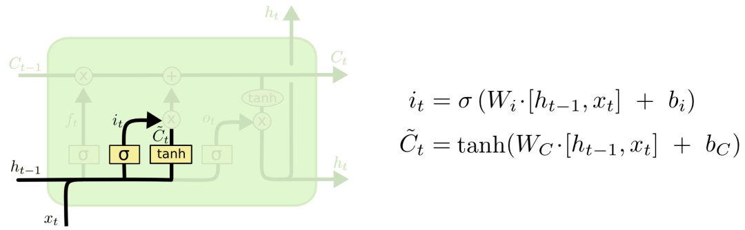 ① 用一个tanh层生成一个备选向量,用于表示获得的所有可添加信息;