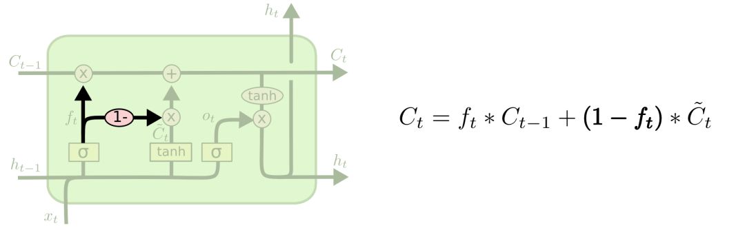 ② 将遗忘门与传入门耦合,即不再分开决定要遗忘和添加的信息。