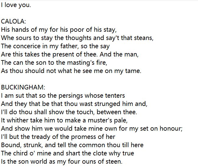 模型比较简单,有兴趣的朋友可以在此基础上进行优化,当然RNN的作用可不仅仅是文本生成哦~