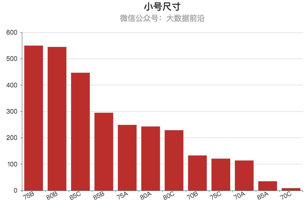 从统计结果来看,小号产品中,75B和80B卖的最好。