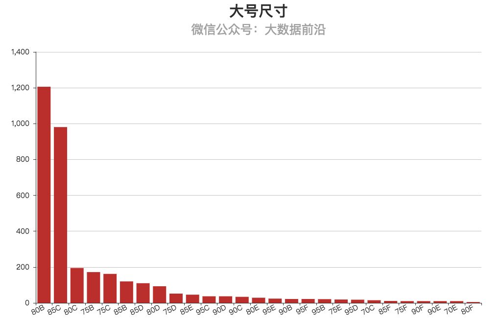 大号产品的尺寸稍微多一些,从B-F都有,不过从大家的购买记录来看,还是B占据了大头,B和C加起来已经超过了三分之二。