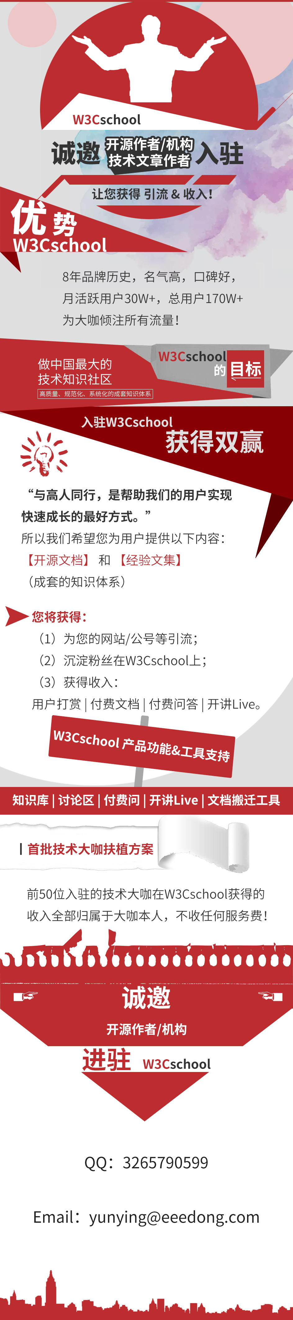 诚邀互联网技术大咖入驻W3Cschool 猿友 2017-04-28 19:00:58 浏览数 (5712) 反馈 HTML 0 人点赞 上一篇:学习编程有必要做笔记吗? 下一篇:Iphone8史上最贵,苹果8这一大新亮点可以一雪前耻!