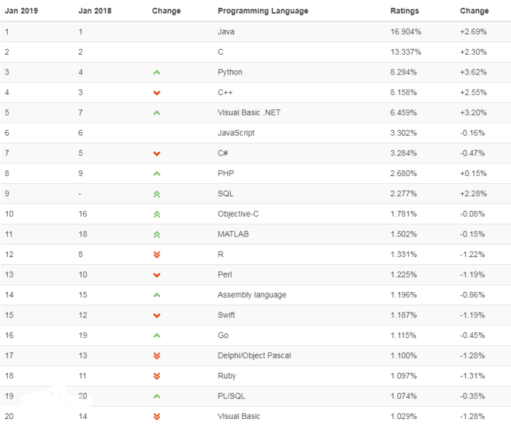 先来看下2019年最新的编程语言使用排行榜(范围:全球)
