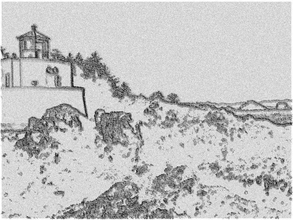 原理类似,但是以线条为单位进行素描,并且增加了随机函数,使得线条长度不确定,并且增加到上下、左右、左上、右下、右上、左下8个方位区块的比较,这样创作的素描画看上去更柔和,也更接近真实的人类作画的风格。