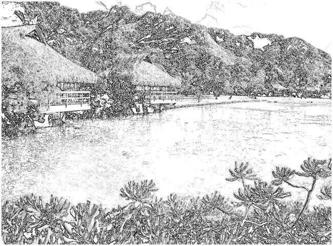 勾轮廓时比较像素点左边一小段区域内像素平均值和右边一小段区域内像素平均值的差值,如果差值超过预设范围,则认为该点是轮廓点。另外,素描时不是一次性成像的,而是由淡到深,依次画,这样可以使图画看起来深浅更分明,更有立体感。